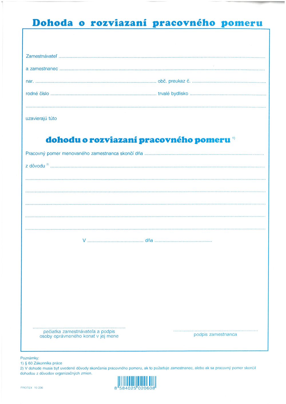 Zamestnanec a zamestnávateľ sa dohodli, že touto dohodou rozväzujú pracovný pomer založený pracovnou zmluvou č. Přečtěte si více o ukončení pracovního poměru v naší sekci o výpovědích. Odměna z dohody o práci konané mimo pracovní poměr.